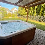 Eine voll ausgestattete Küche hat eine Mikrowelle, einen Wasserkocher und einen Kühlschrank. Die Bushaltestelle Balatonmariafurdo Aradi utca ist in fußläufiger Entfernung von der Villa.